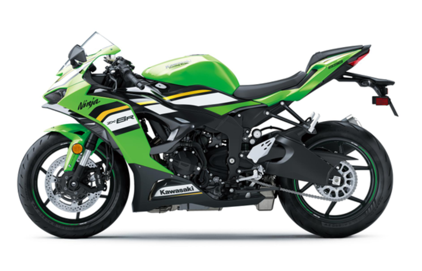 A vantagem oferecida pelo maior deslocamento de 37 cm³ da Ninja ZX-6R é significativa para o prazer da pilotagem no mundo real. Maior desempenho em todas as faixas de rpm é bem-vindo em passeios esportivos, tanto em estradas vicinais quanto em pistas de corrida. Mas o torque mais forte em baixas e médias rotações, em comparação com os modelos supersport de tamanho médio “comuns”, também oferece maior usabilidade em situações cotidianas de condução nas ruas, como andar no trânsito urbano ou acelerar para ultrapassar outro veículo na rodovia. As atualizações para 2024 incluem ajustes relacionados às emissões.